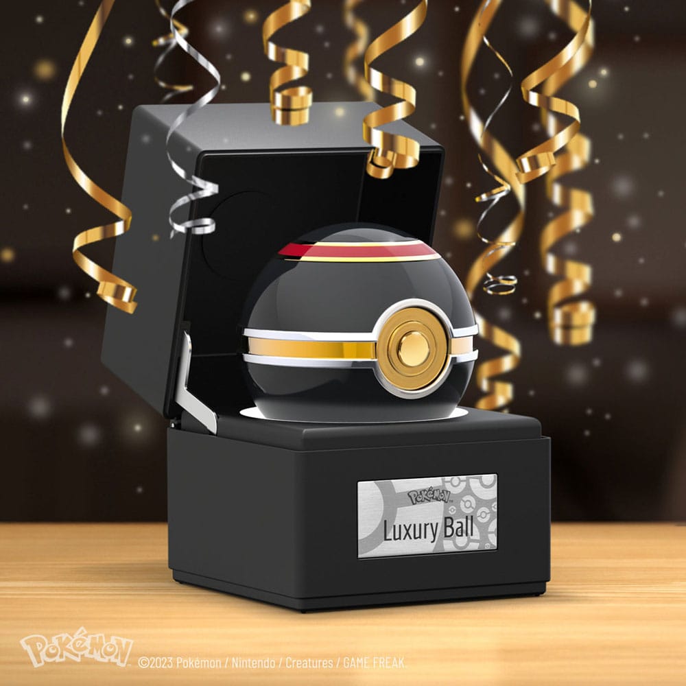 Fans de Pokémon de todas las edades disfrutarán con la réplica exacta de Lujo Ball. Diámetro de la Malla Ball aprox. 8 cm, tamaño de la caja aprox. 9 x 10 x 10 cm.
