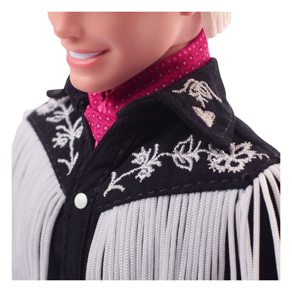 Greetings from Barbie Land! This collectible Ken doll turns heads in a cool cowboy look inspired by Ken's western outfit in Barbie The Movie. His vintage-inspired button down is paired with a pink bandana, white cowboy hat and matching boots. Styled like film Ken, he makes a great gift for fans and collectors alike! Doll stand included. Doll cannot stand alone. Colors and decorations may vary.